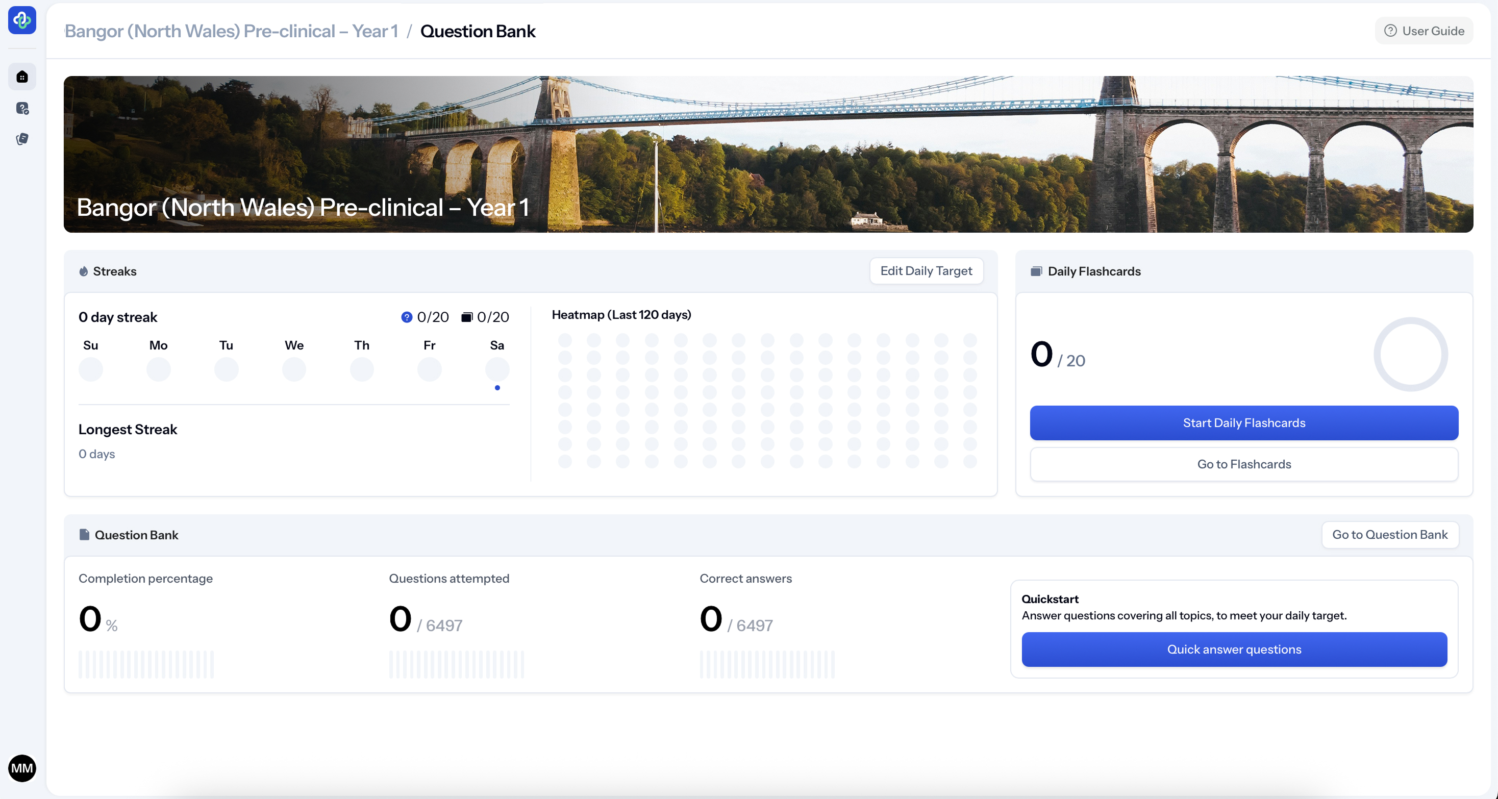 Success in your Year 1 exams at Bangor (North Wales) Medical School depends on keeping up with your lectures and revising consistently. The Medibuddy Year 1 Question Bank gives you access to more than 6,400 practice questions tailored to your syllabus, so you can check your progress and apply what you’ve learned. By starting early, managing your time well, and using different study approaches, you’ll be able to cover each module thoroughly and build a solid foundation for your exams.