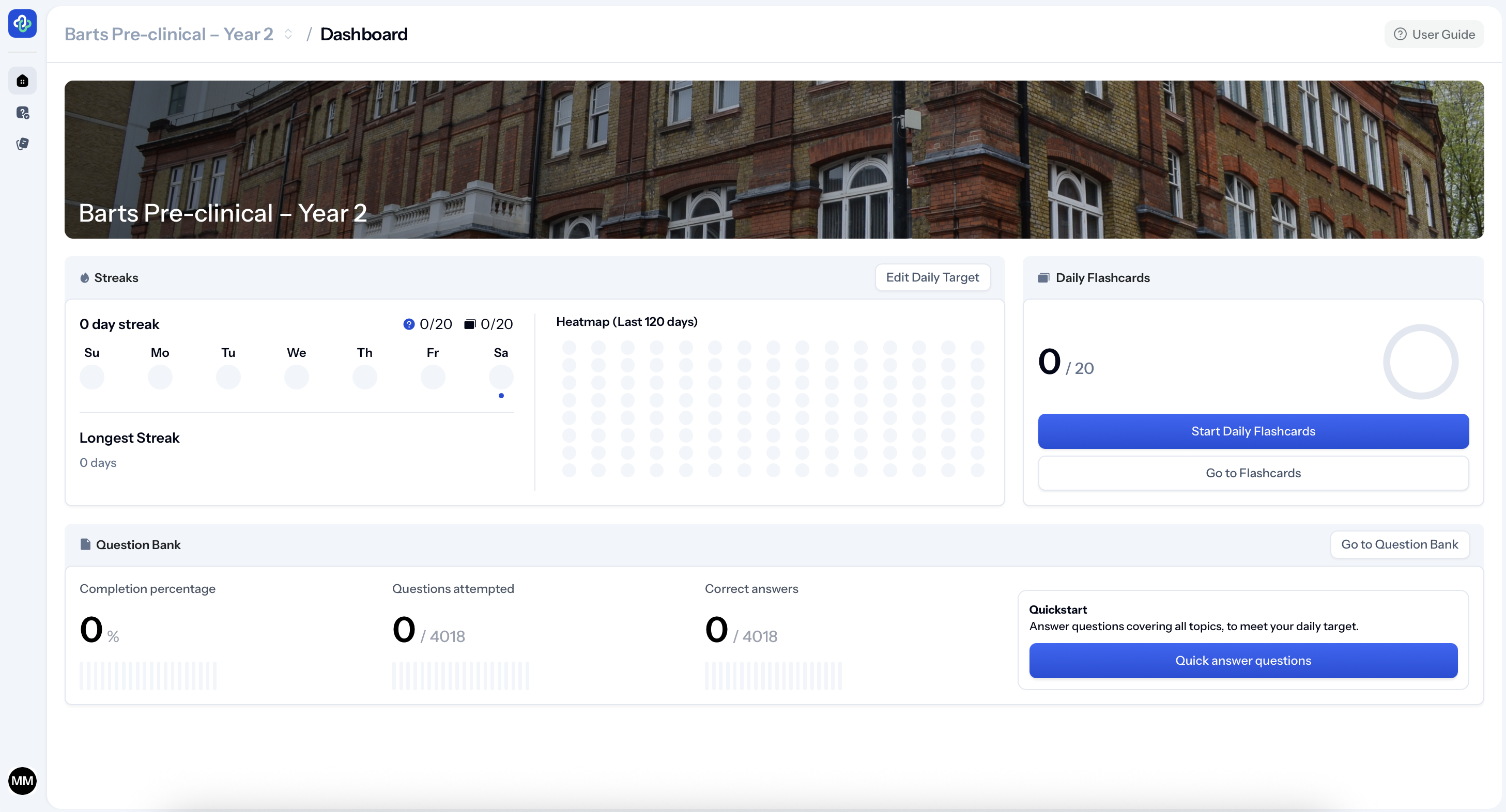 The question bank is regularly updated to reflect the current Year 2 Barts syllabus, providing exam-focused practice and supporting the knowledge and confidence you’ll need as you approach your clinical years.