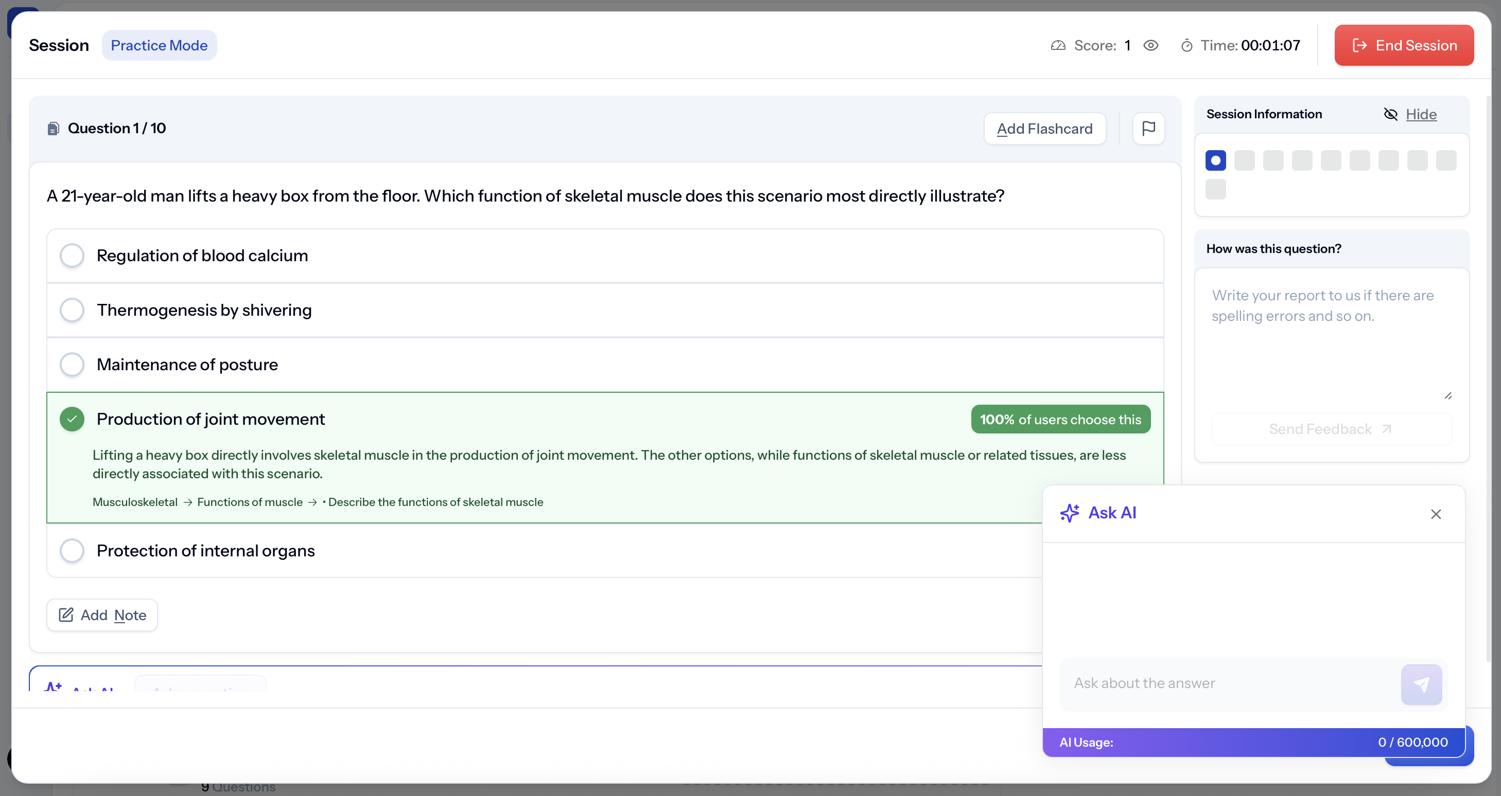 You can also ask AI to explain mistakes, add notes, or create flashcards for later revision.
