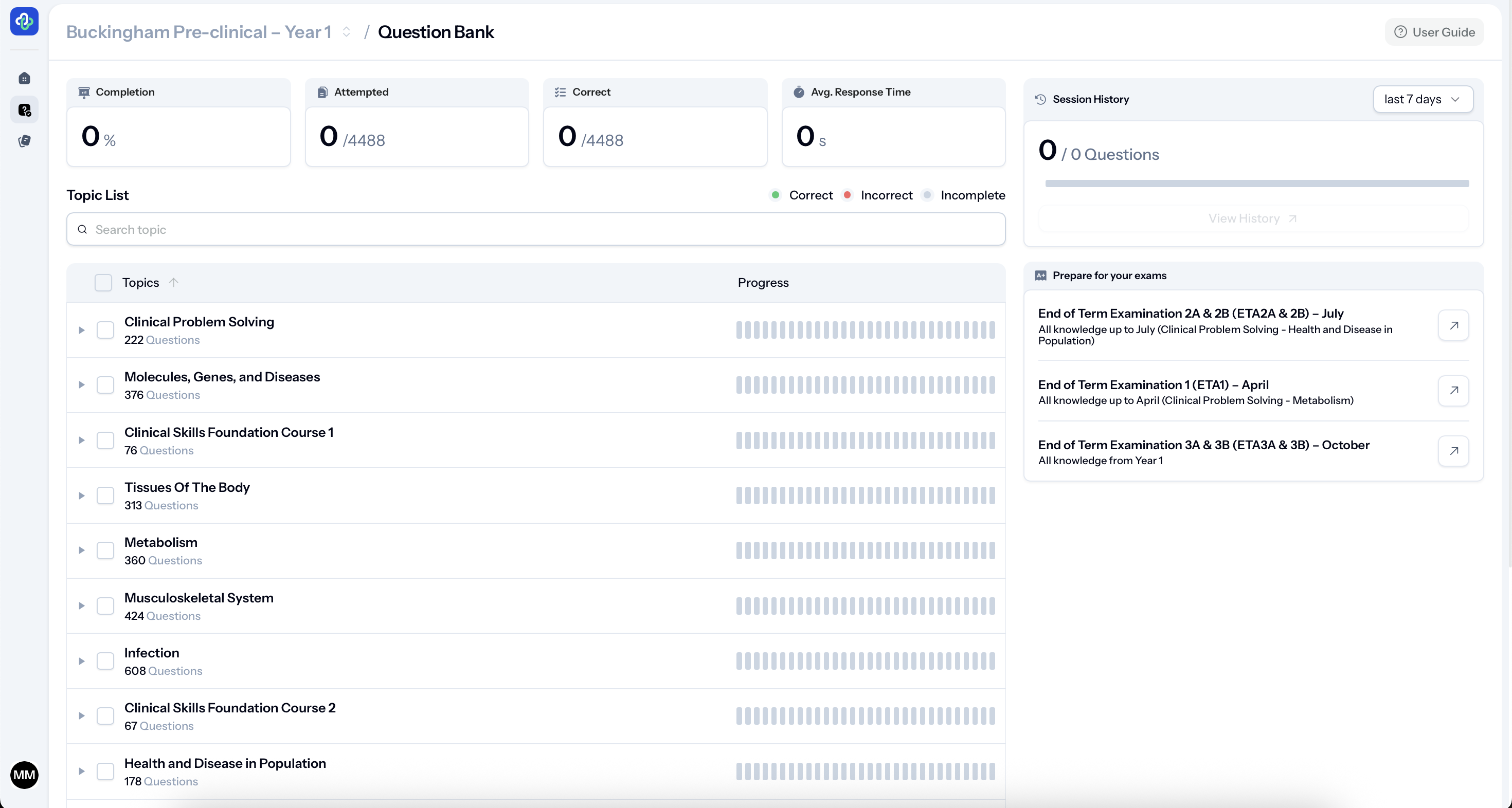 If you’re preparing for your Buckingham Medical School Year 1 exams, Medibuddy’s Year 1 pre-clinical question bank provides a great place to start.