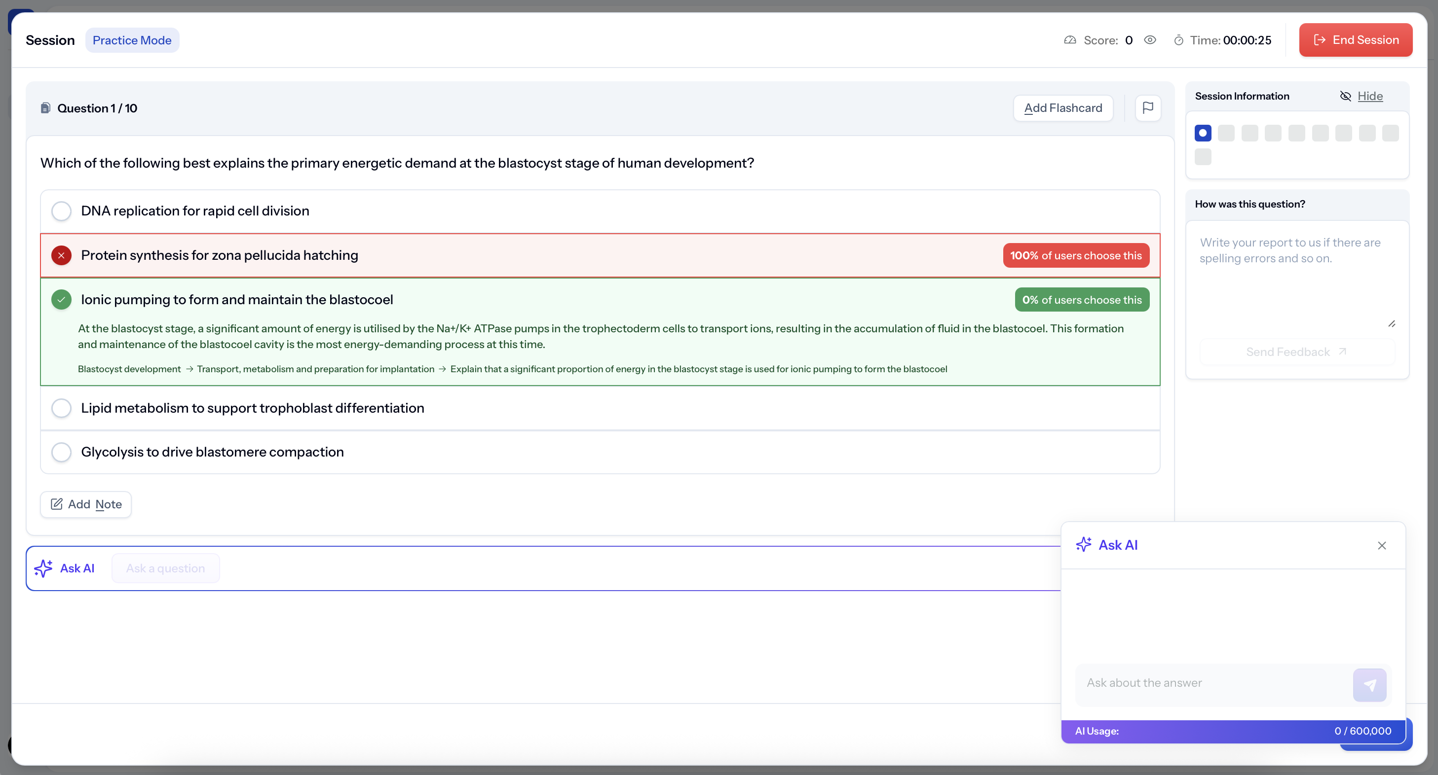 You can also ask AI to explain mistakes, add notes, or create flashcards for later revision.