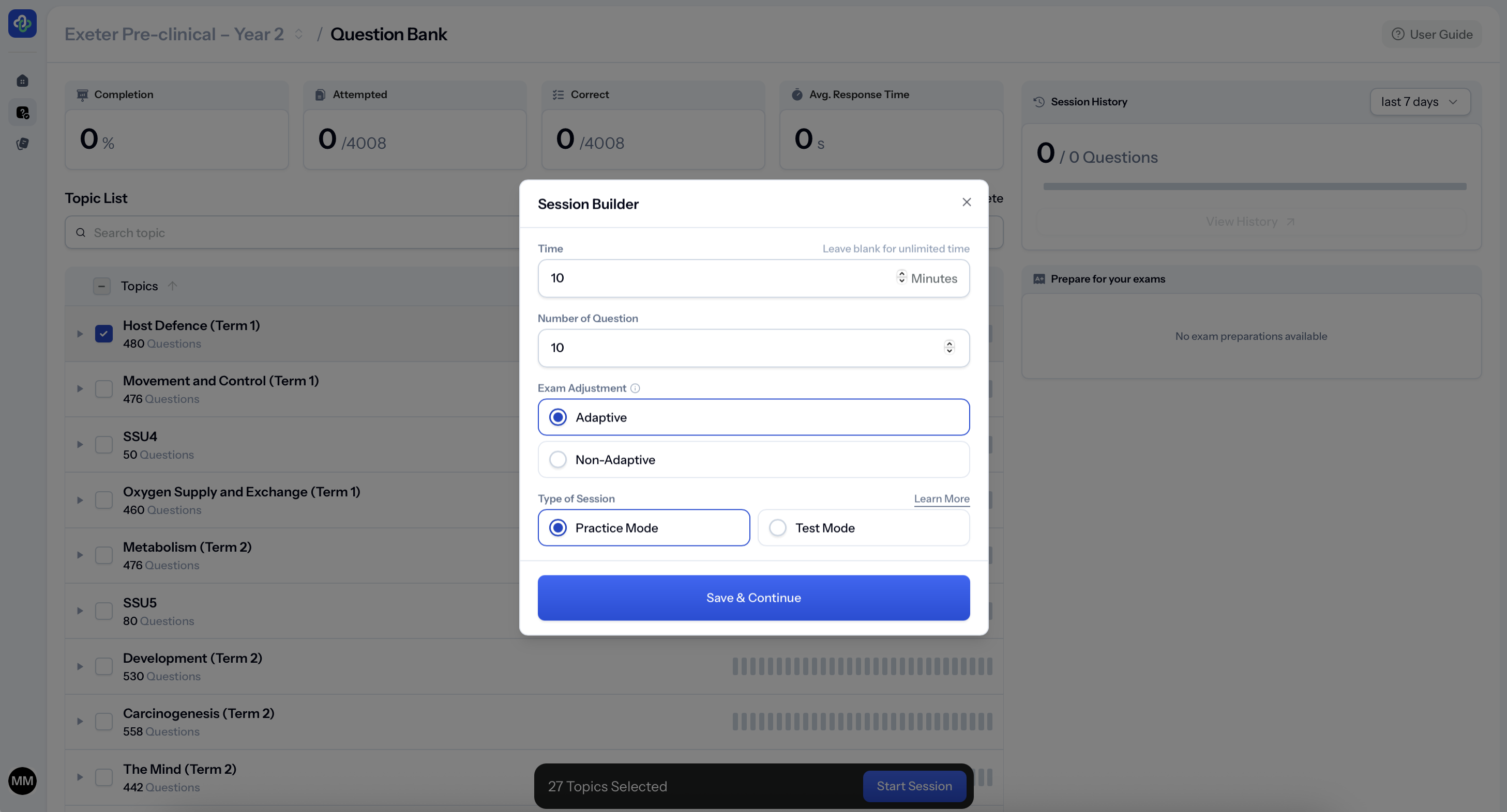 You can work module by module, choose how many questions you want to answer, and target specific topics as your exams approach.