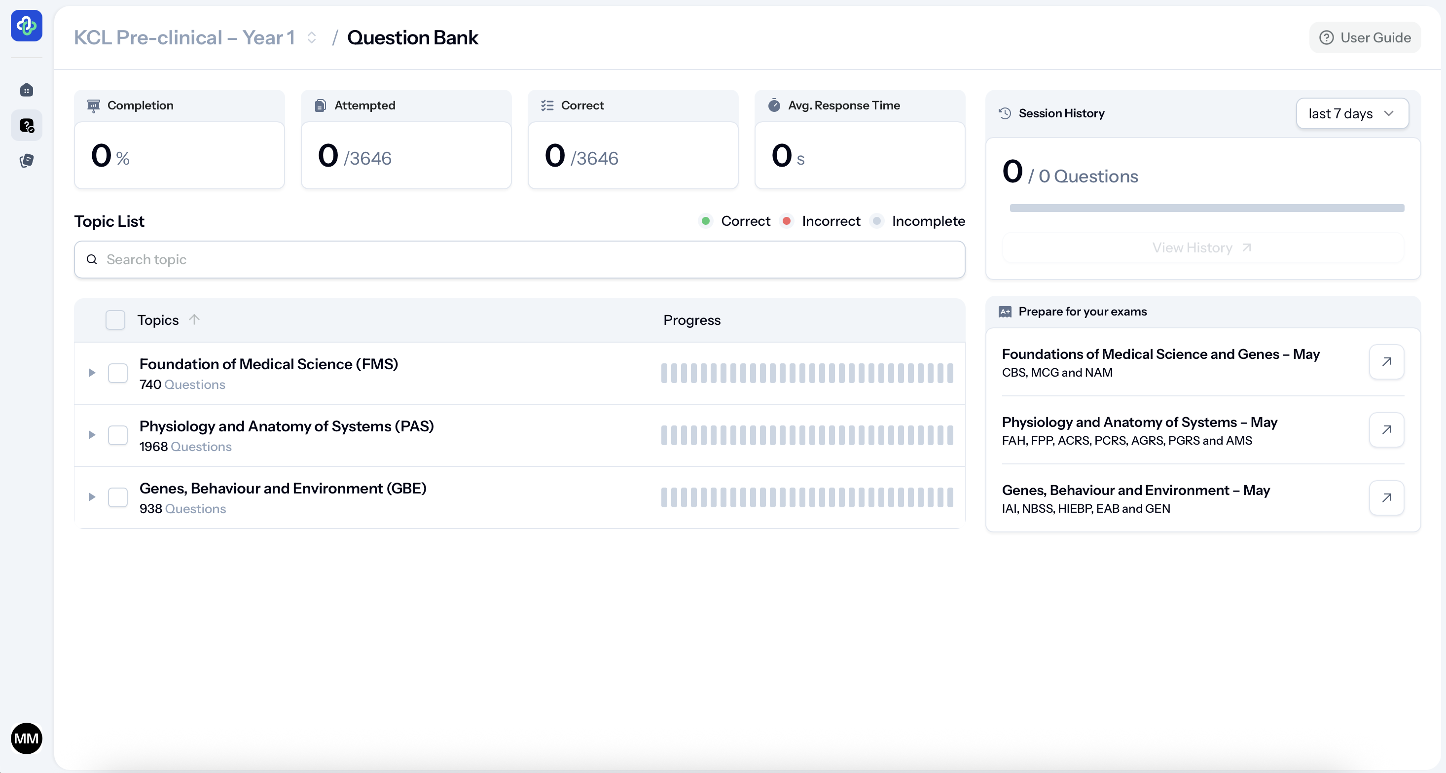 The question bank includes features such as allowing you to filter questions based on specific sections of the syllabus. So, whether you’re preparing for the Foundations of Medical Science (FMS) formative paper in January, or the summative papers in June such as Genes, Behaviour and Environment (GBE), you can narrow your focus to meet your unique study needs.