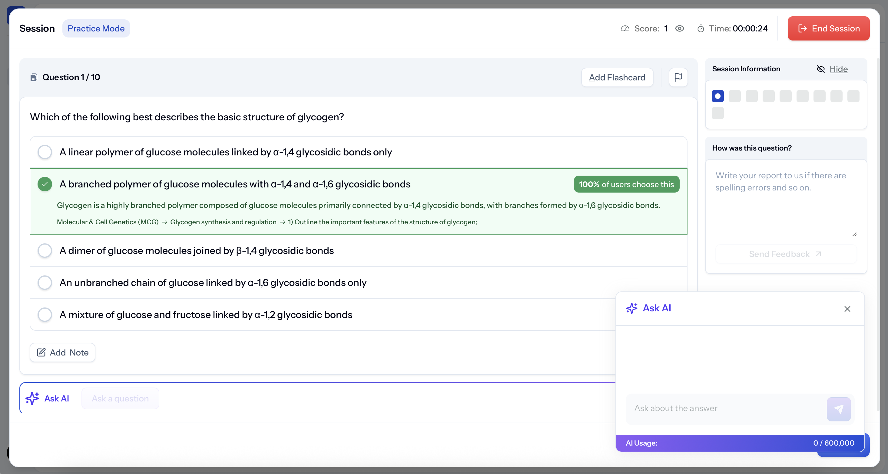 You can also ask AI to explain mistakes, add notes, or create flashcards for later revision.