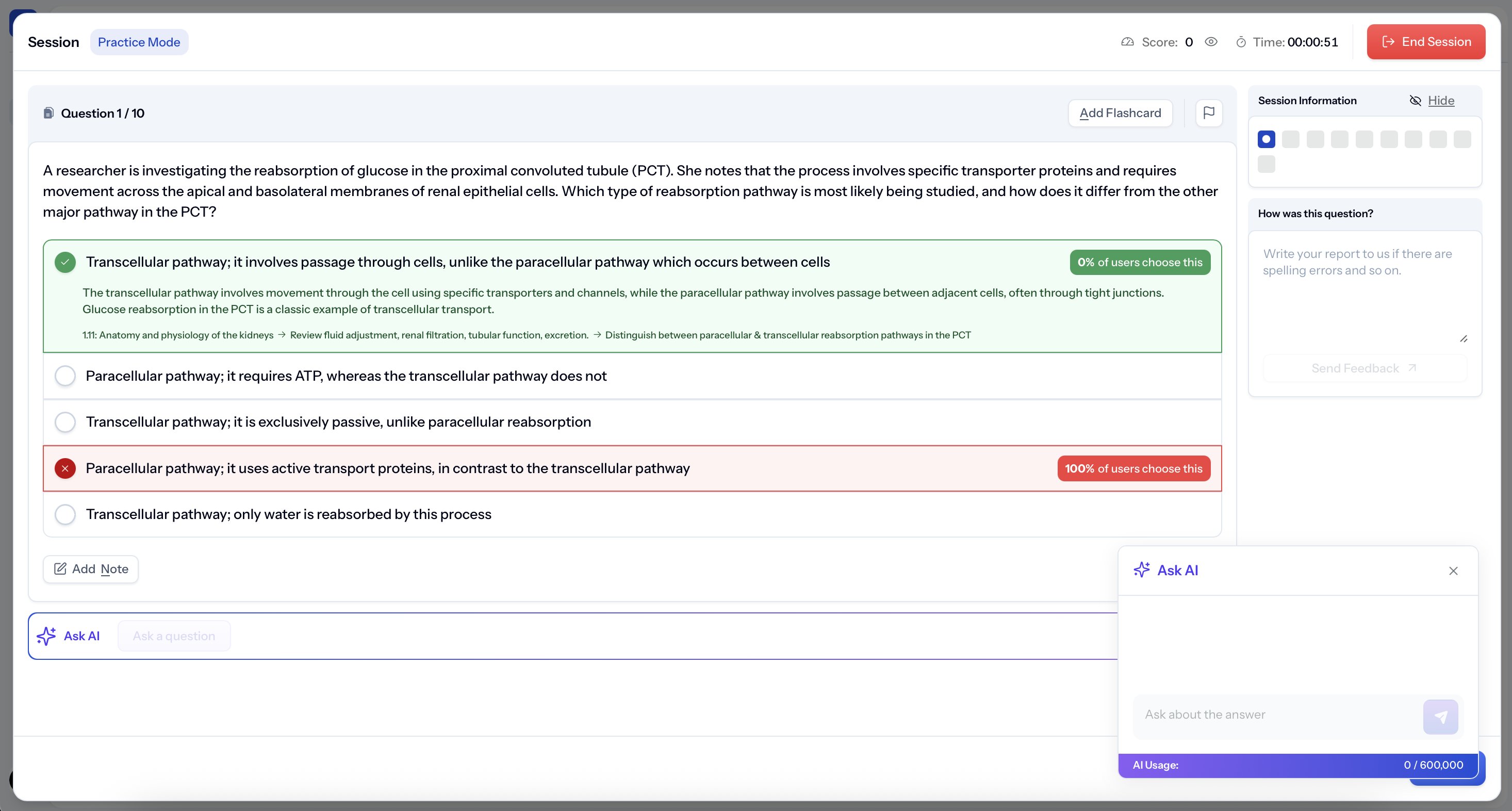 You can also ask AI to explain mistakes, add notes, or create flashcards for later revision.