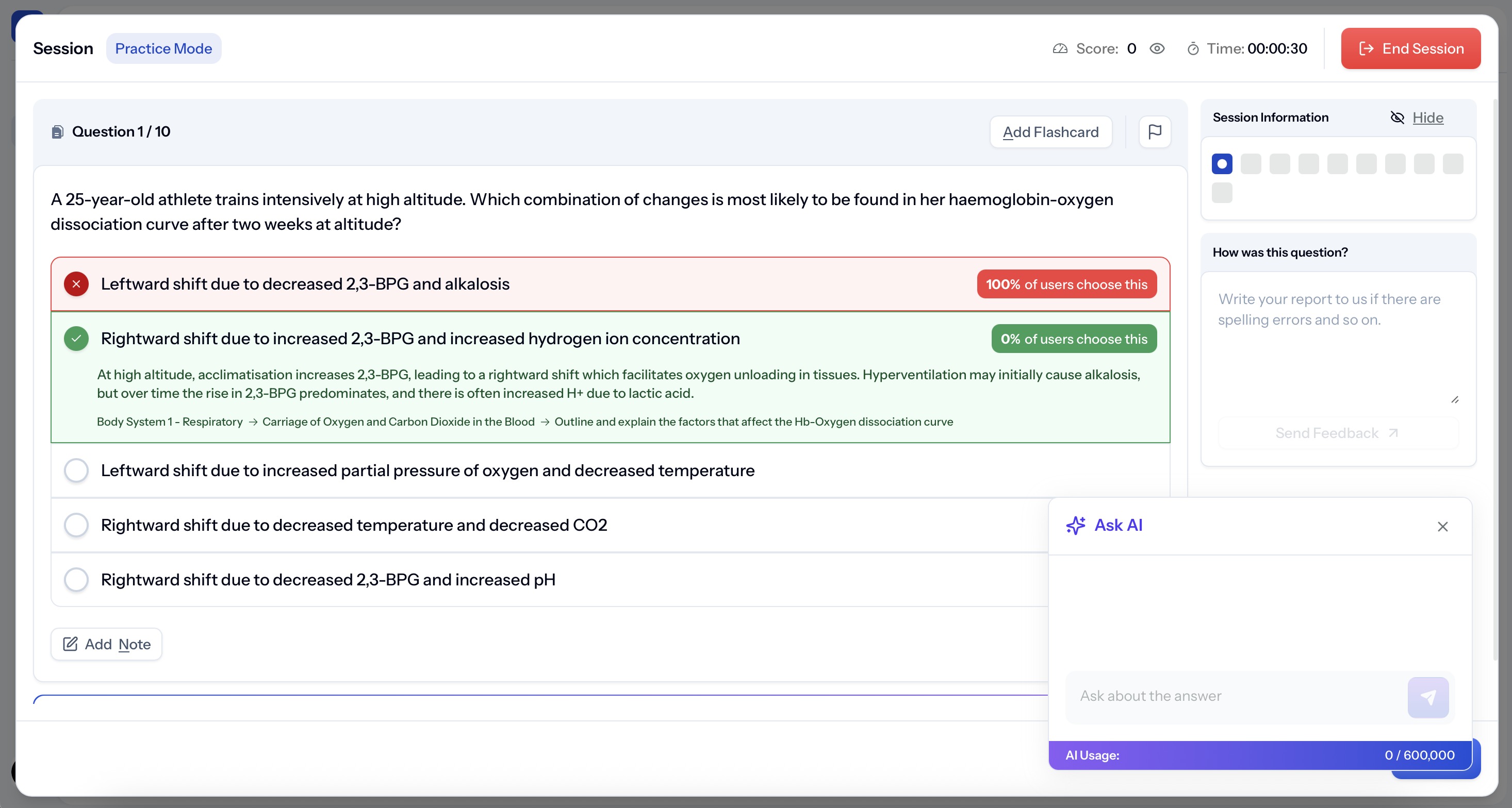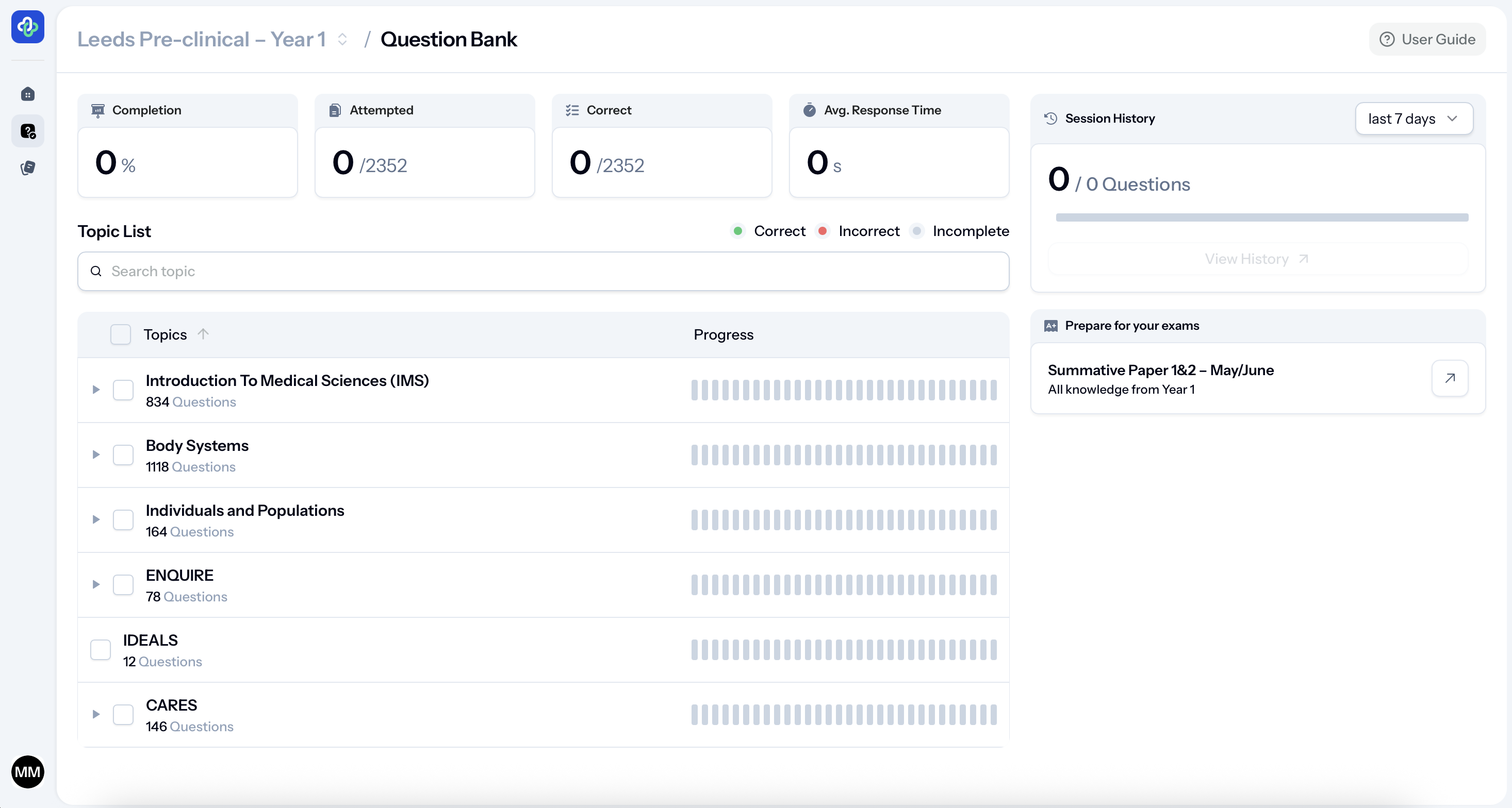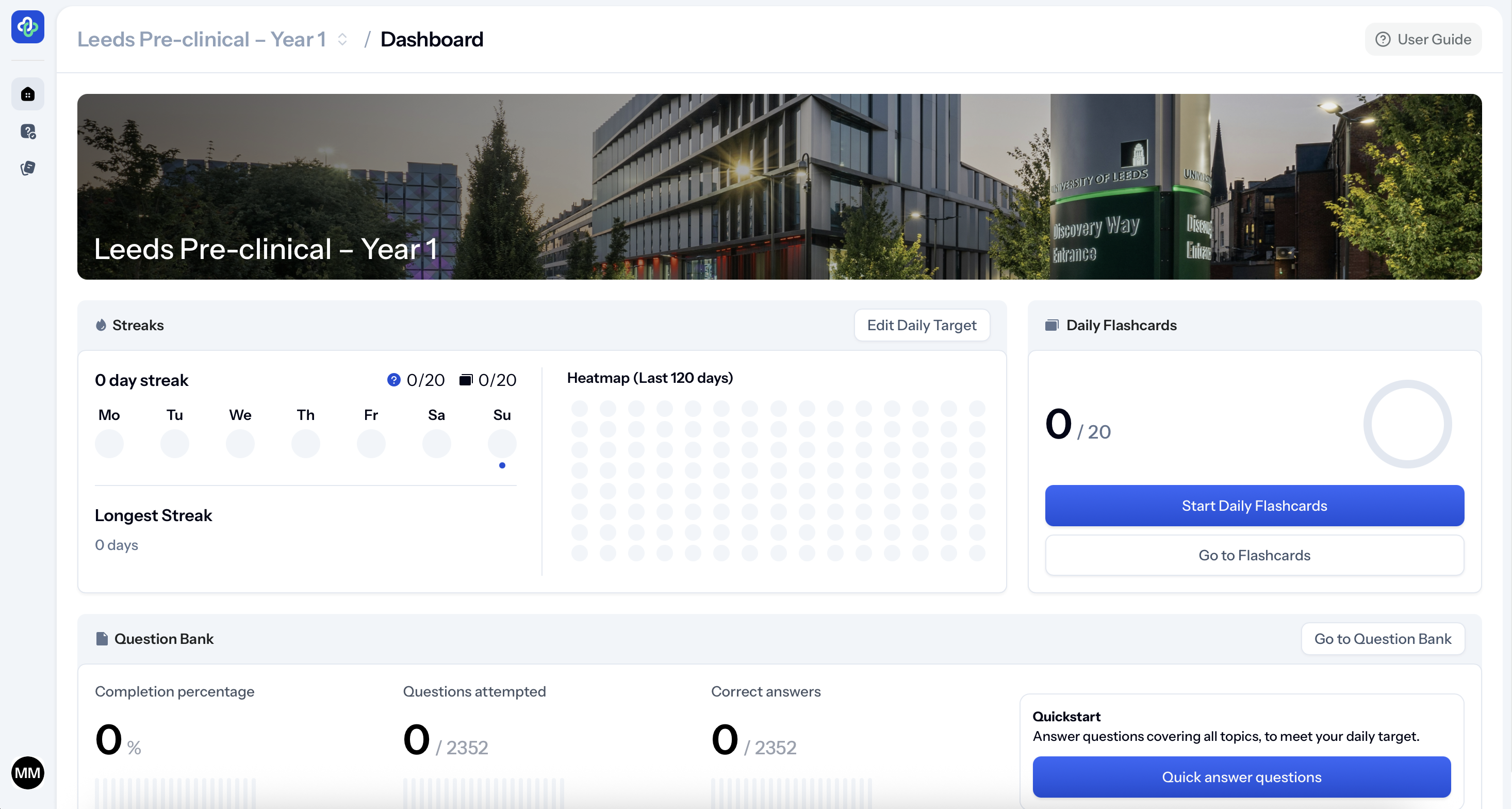 Achieving success in your Leeds School of Medicine Year 1 exams relies on steady revision and making the most of your course materials. Medibuddy’s Question Bank provides more than 2,300 questions mapped to the Leeds curriculum, giving you the chance to practise applying what you’ve learned and identify areas for improvement. With regular study, good organisation, and varied revision techniques, you’ll cover every module thoroughly and build the knowledge you need for strong exam performance.