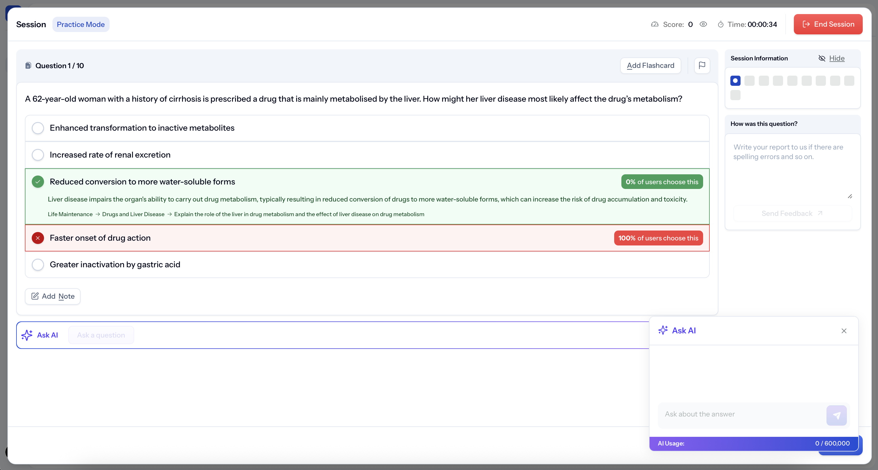 Medibuddy’s Pre-Clinical Year 1 Question Bank is tailored to match St George’s medical curriculum, offering targeted, syllabus-aligned practice questions that will help reinforce lecture material. With over 2,100 questions similar to those used in exams and in-depth explanations, our question bank enables you to understand the topics in your course further, ensuring you're well-prepared for St George’s Year 1 exams.
