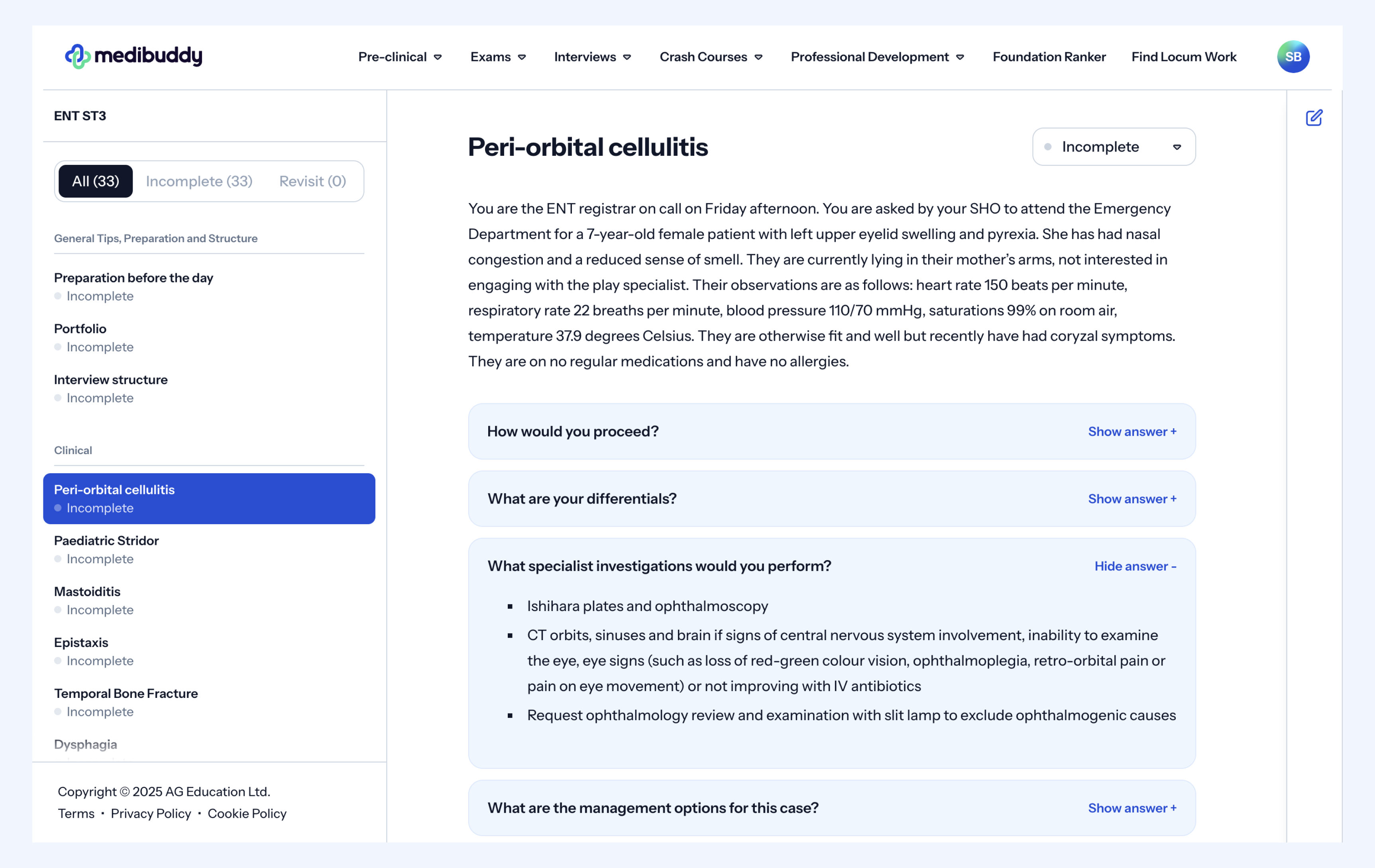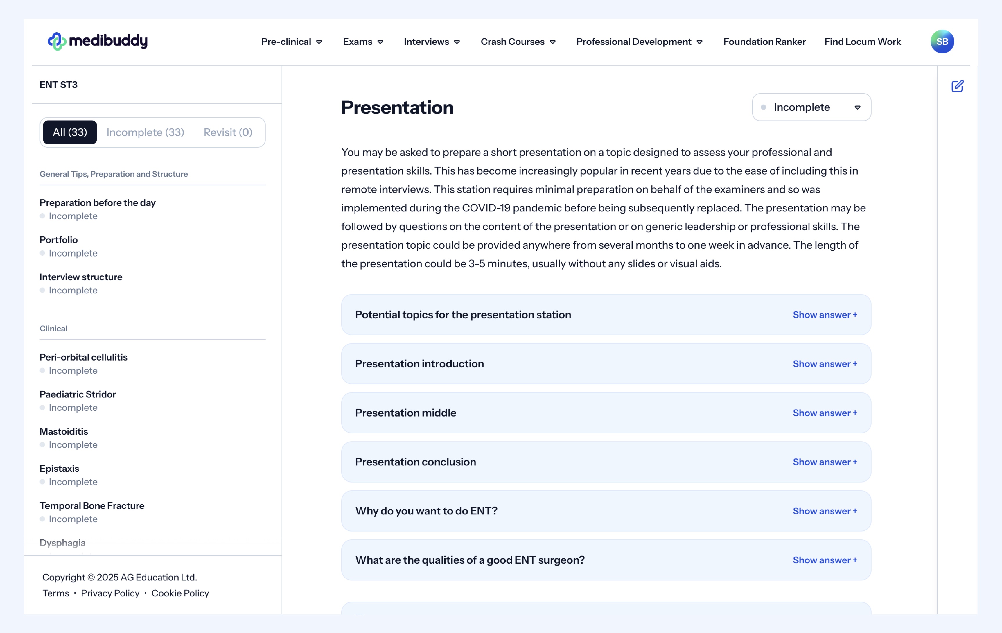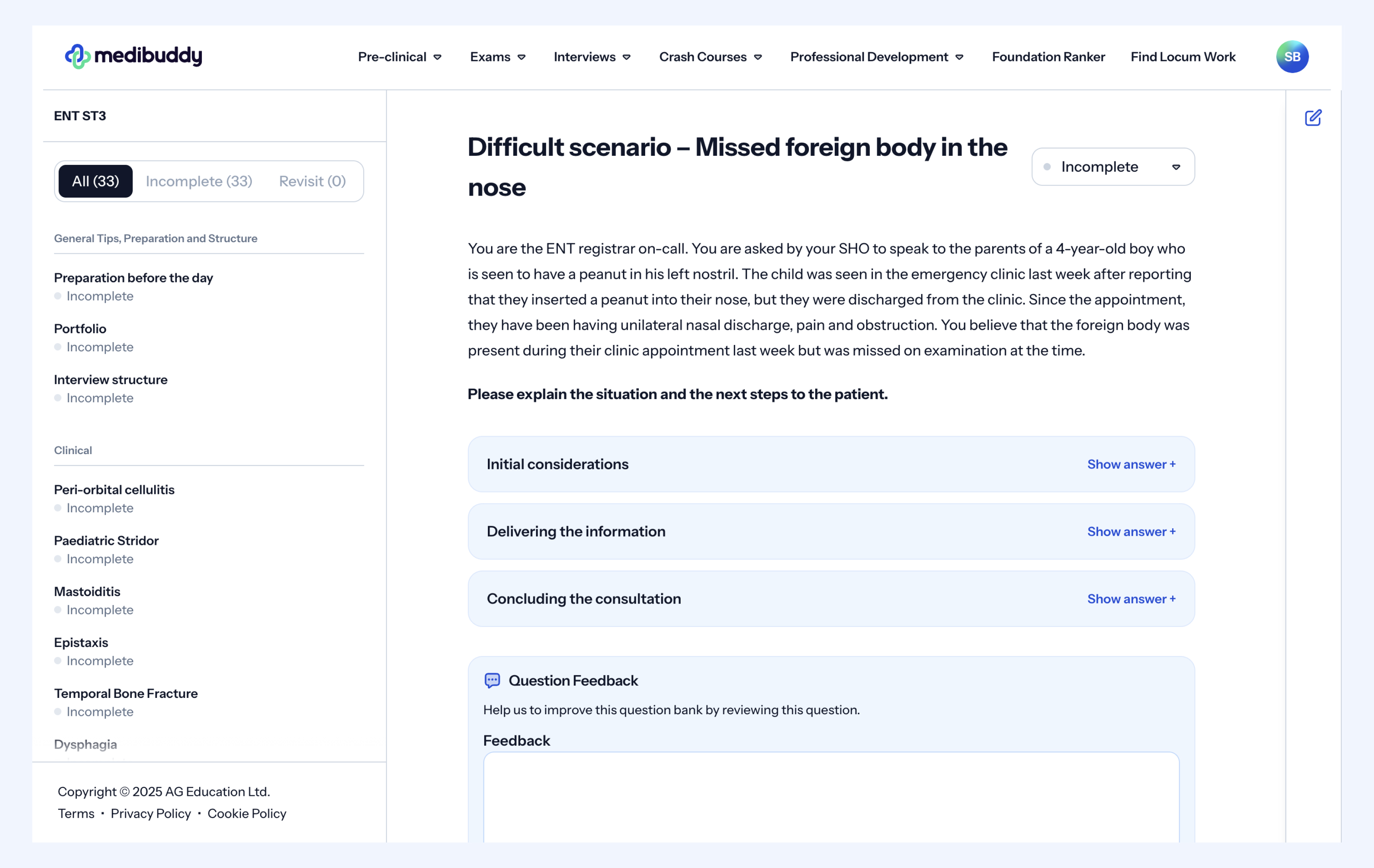 The Medibuddy ENT ST3 interview question bank provides support for preparing for a potential presentation or other areas relating to professionalism that you might face at this station, and we have provided an example below.