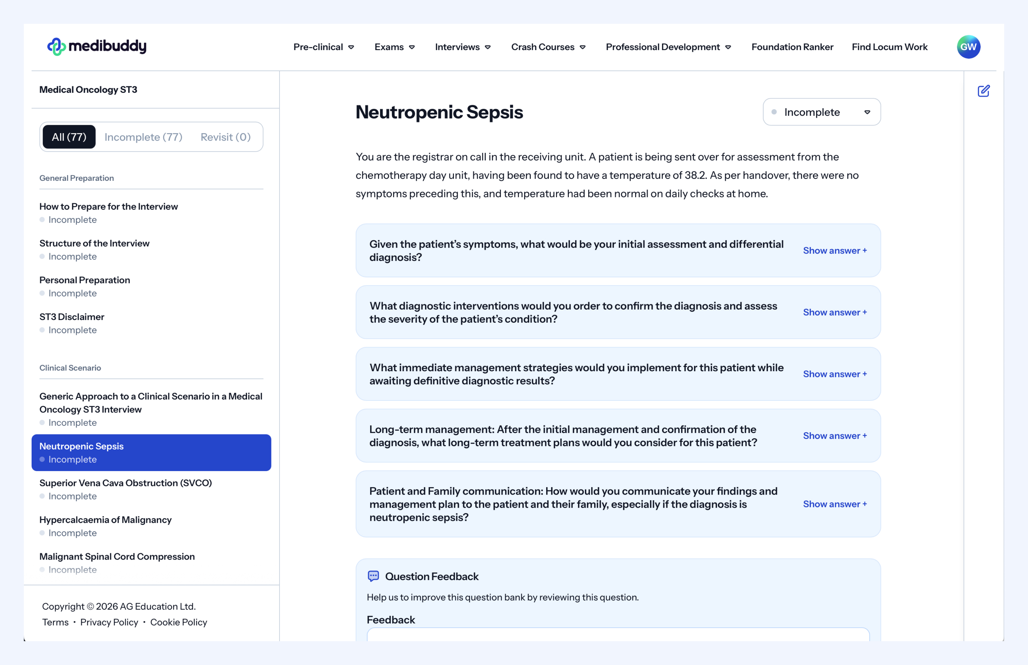 That's why we’ve created this resource, saving you from having to experience the same troubles as we did. With the help of our high-scoring trainees, the Medibuddy Online Medical Oncology ST3 Interview Question Bank is designed to help you prepare effectively and confidently.