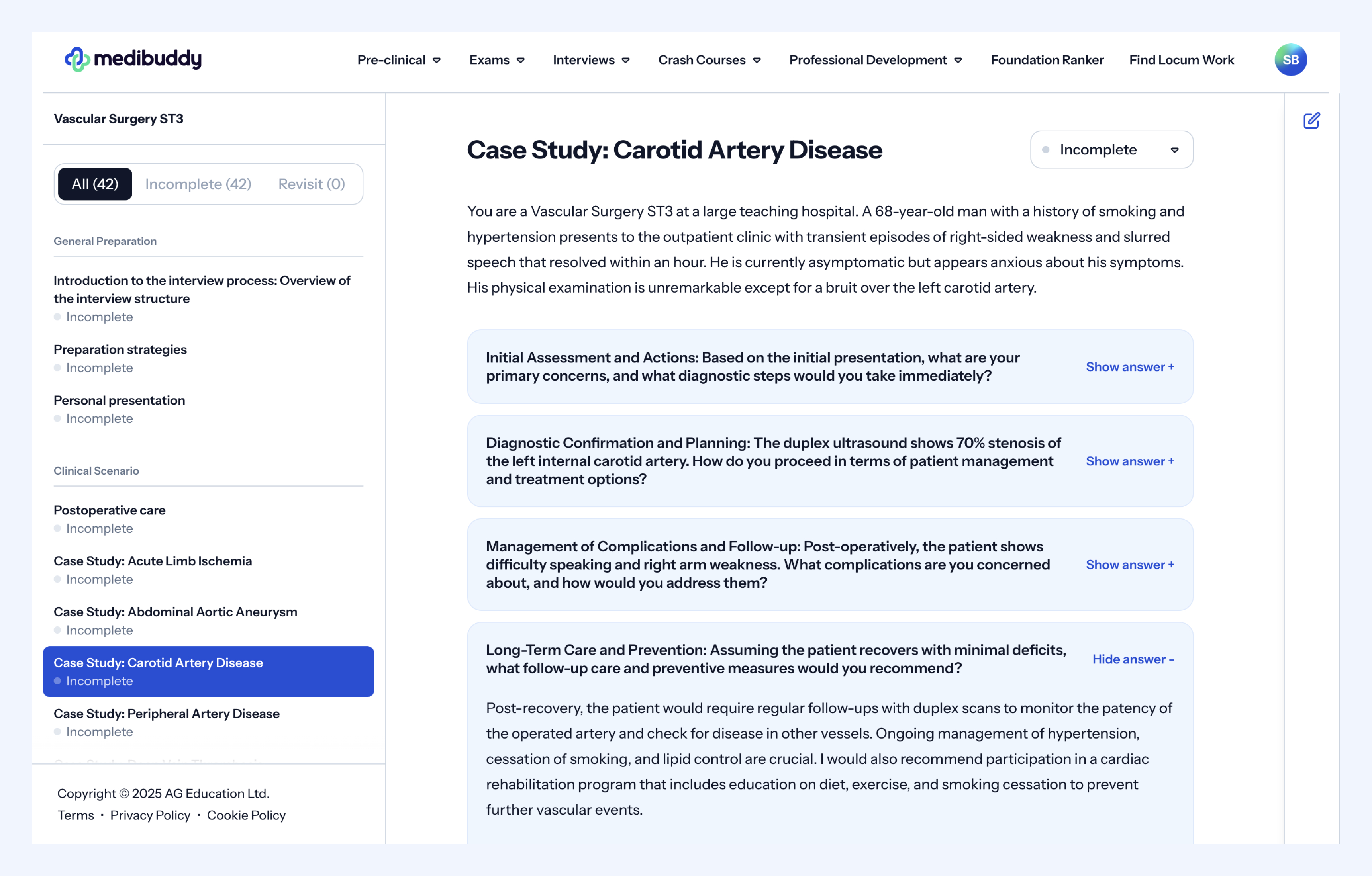 Here’s an example of a clinical scenario from our Vascular Surgery ST3 Question Bank: