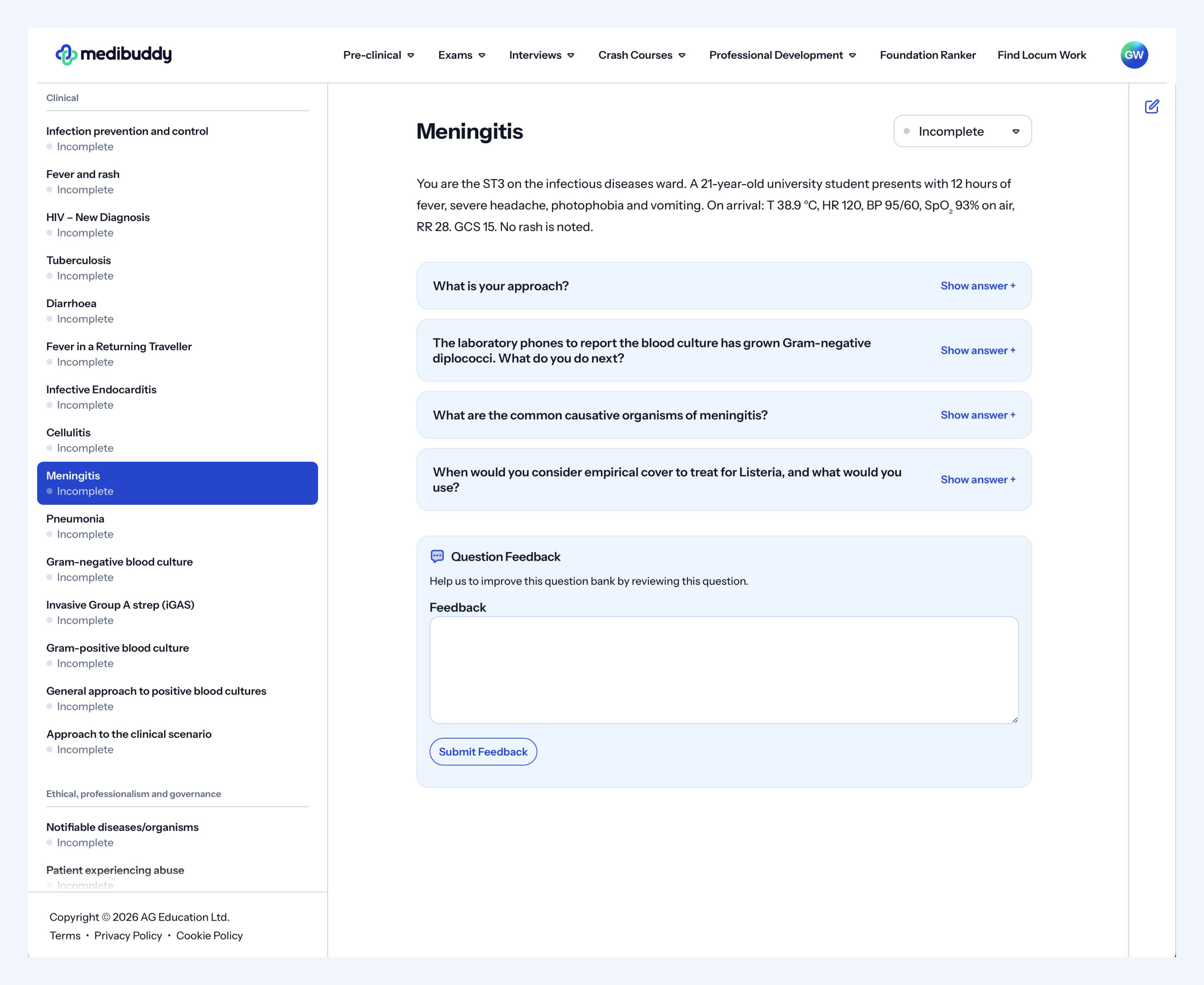 To make your life easier, we’ve combined everything you need in one place. Created with input from successful trainees, the Medibuddy Online Combined Infection Training ST4 Interview Question Bank provides realistic interview scenarios, giving you everything you need to prepare thoroughly and approach your interview with confidence.