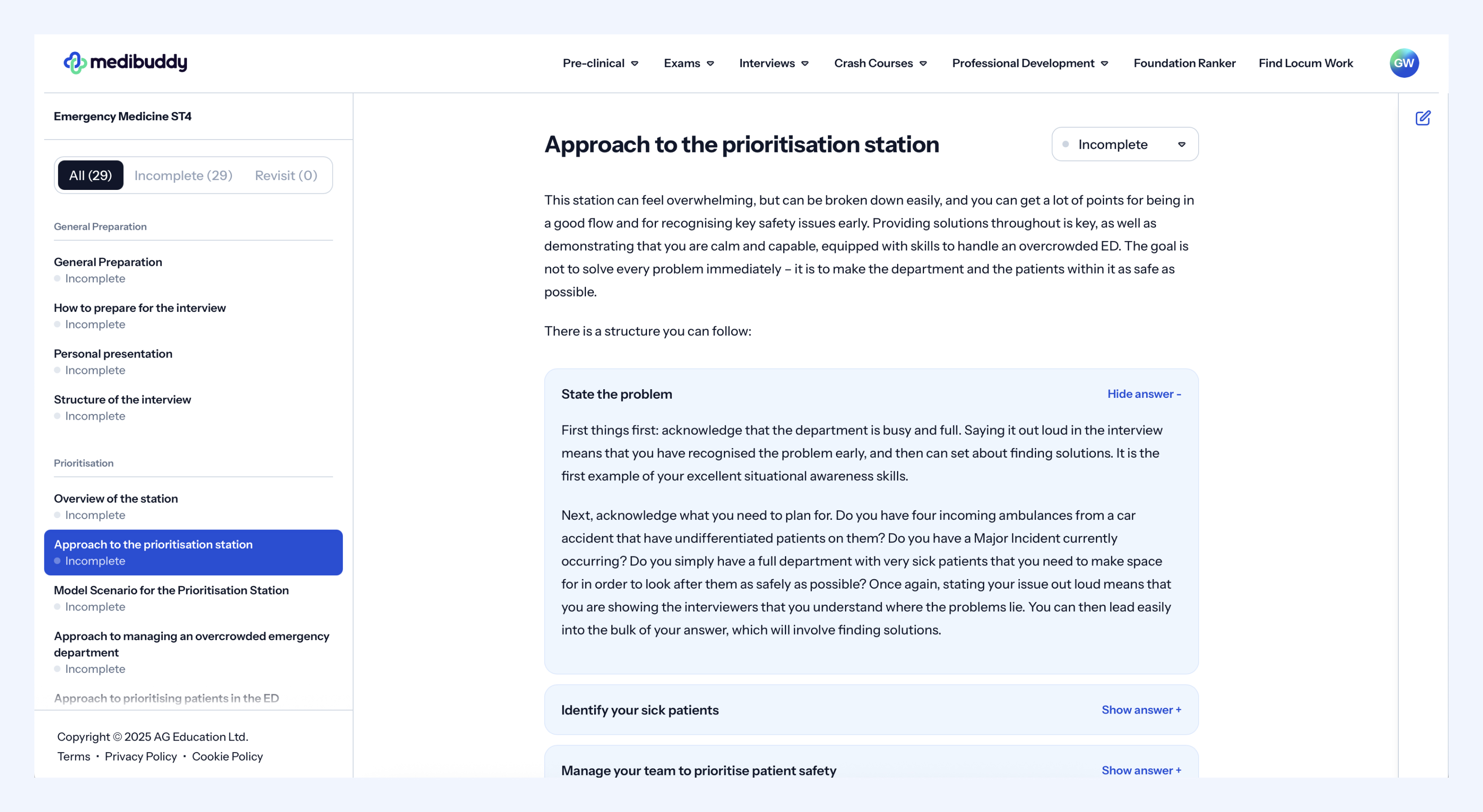 That’s why we’ve created a single, reliable resource. With input from top-performing trainees, the Medibuddy Online Emergency Medicine ST4 Question Bank provides realistic scenarios so you can practise effectively and feel fully prepared.
