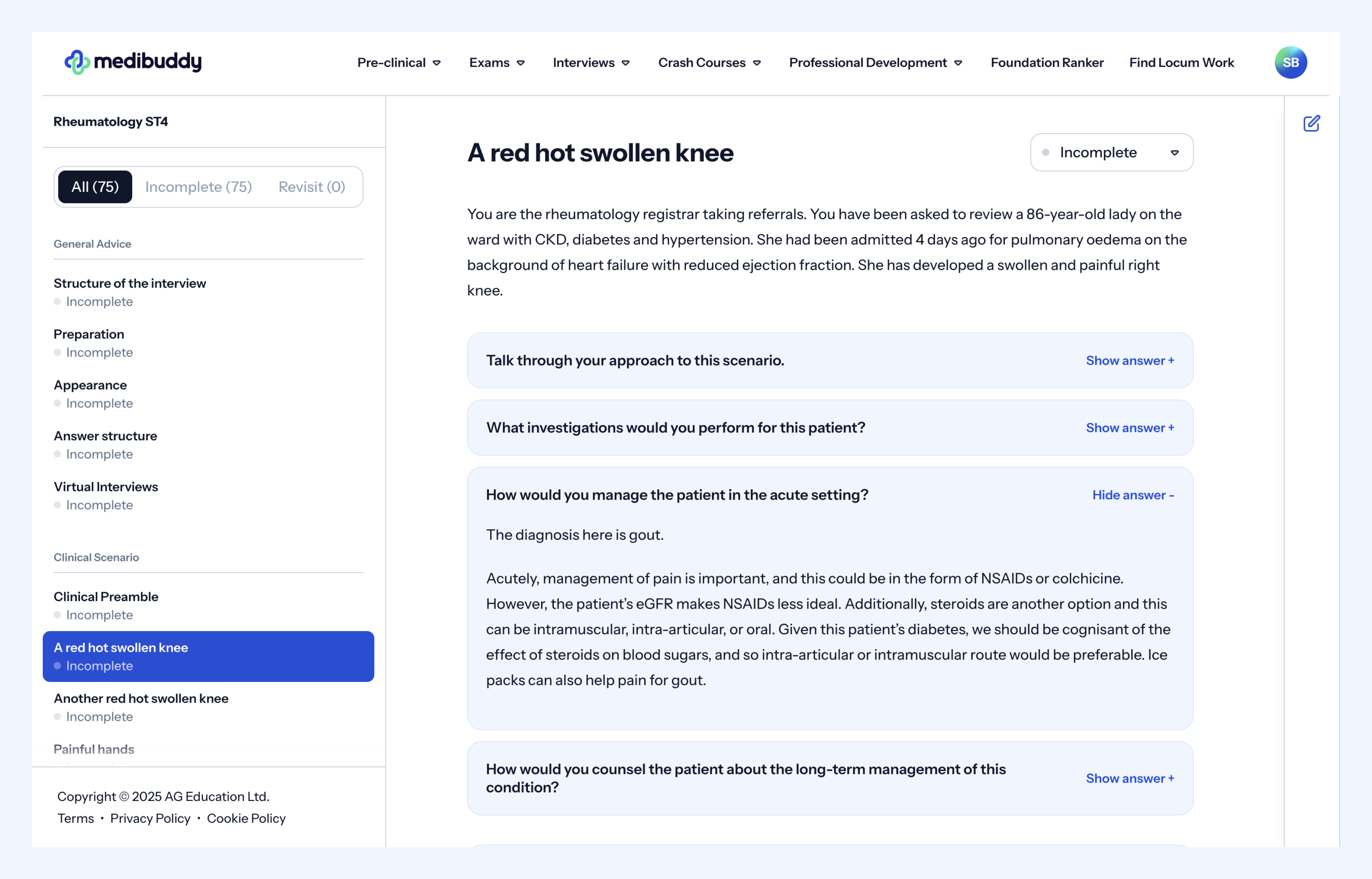 Below is the type of clinical scenario you can expect to find in our Rheumatology ST4 Interview Question bank: